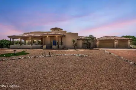 This stunning Showcase Home is just minutes away from the enchanting ambiance of Historic Old Mesilla. The incredible open floor plan offers 3 bedrooms, office, 2.5 baths, 3,187 sq. feet and a 3 car garage with built-in shelves. You are welcomed by a unique rotundra entry with nichos and clerestory windows.